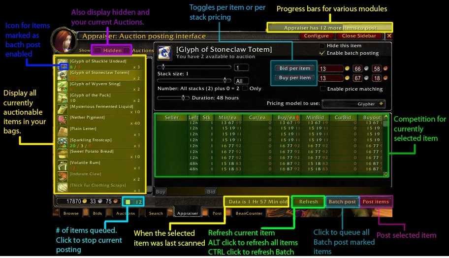 Auctioneer is the most classic auction house addon. For most of WoW’s lifespan, Auctioneer was the iconic addon anyone would use for the auction house.