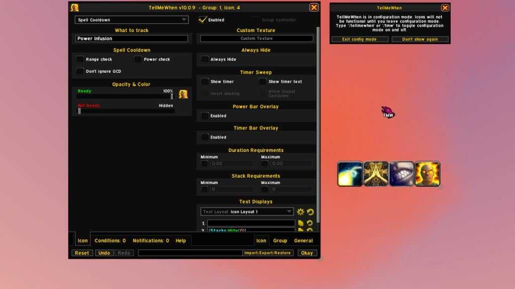 TellMeWhen does a lot of the same things as WeakAuras. It doesn’t have as many options for customization and advanced scripting, but that makes it less intimidating to get started with. It’s still a very robust framework with a lot of options.