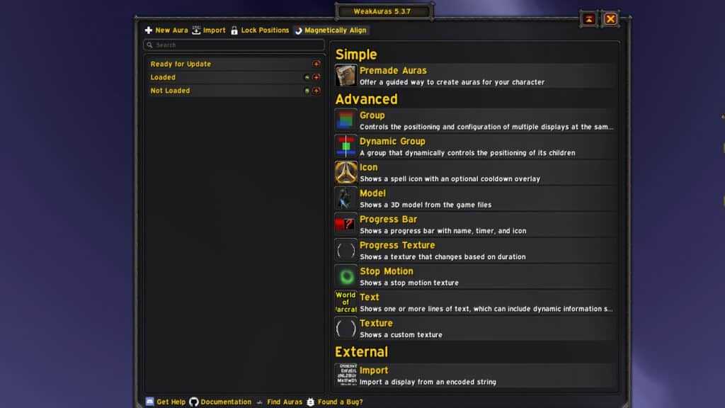 You can’t talk about addons in WoW without talking about WeakAuras. This amazing and flexible tool allows you to set up and display custom graphics in WoW’s interface, showing important information such as buffs, debuffs, alerts, and all sorts of valuable data during combat with improved visibility.