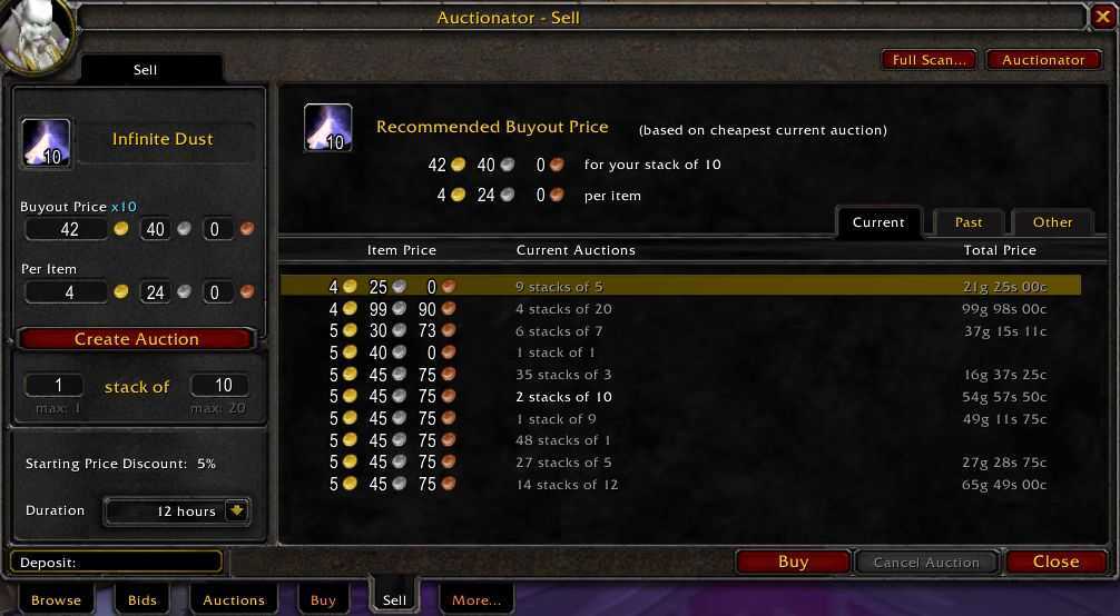 Auctionator предназначен для тех, кто ежедневно пользуется аукционом. Делает аукцион более удобным и понятным для использования, четко и лаконично предоставляя списки товаров.