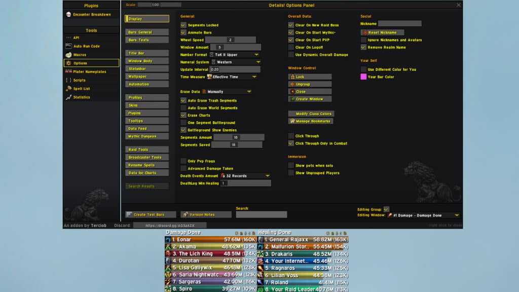 Details! has a ton of options for what data to display and how. (Image: Blizzard via HGG/Sarah Arnold)