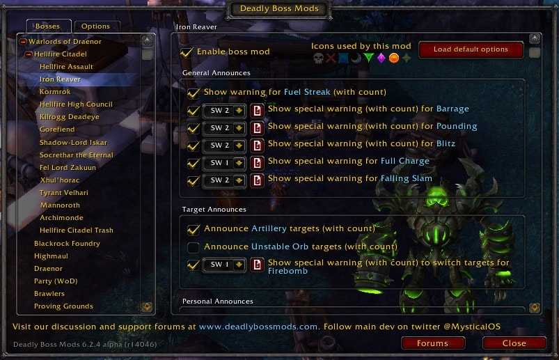 Классический аддон-энкаунтер, необходимый каждому, кто хоть как-то проходит PvE контент. Имеет множество функций: таймеры и способности боссов и треша, алерты, общий рейдовый счетчик и т.п.