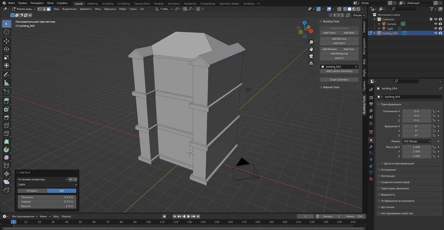 Настройки крыши в Building ToolsСкриншот: Blender / Blender Foundation