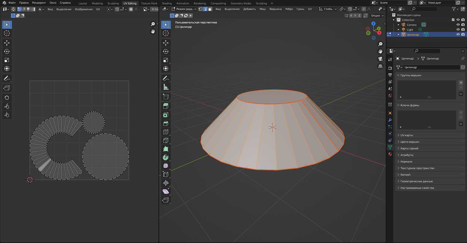 Данный аддон не совсем вписывается в общий формат подборки. Тем не менее он заметно облегчает работу на одном из самых сложных этапов 3D-моделирования — этапе построения UV-развёртки. С помощью UV Squares можно выпрямить арочную структуру UV-островов, которые обычно получаются при развёртке объектов конусной формы, и оптимизировать UV-карту.
