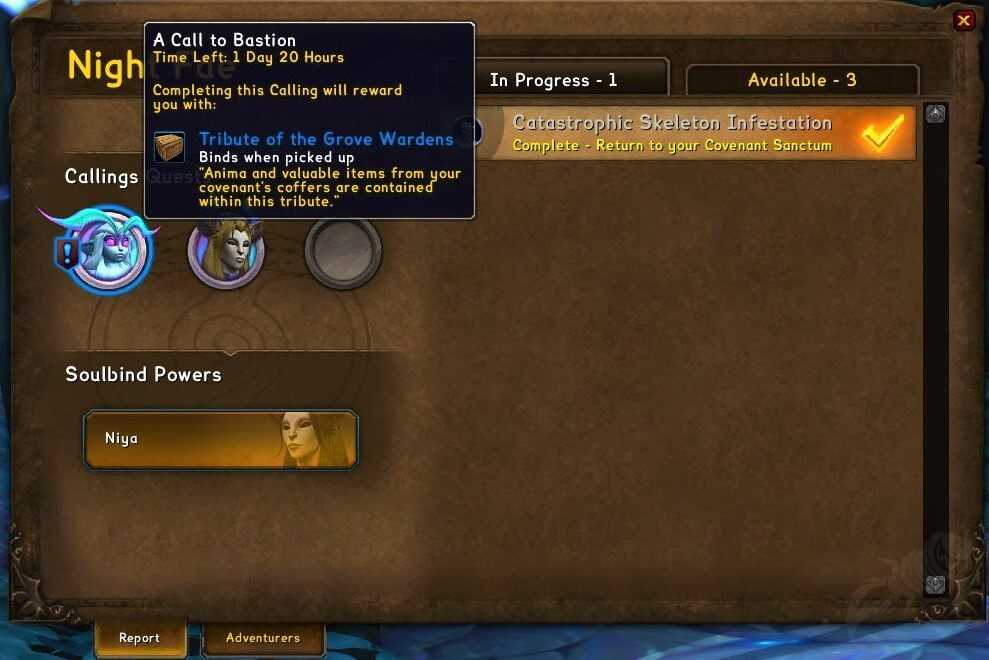 Задания, которые вы еще не приняли, будут помечены синей рамкой и голубым восклицательным знаком рядом с портретом квестгивера. И наоборот — все уже взятые квесты не будут никак подсвечены. Это удобно, чтобы посмотреть доступные и уже выполняемые Призывы, не заходят в ковенант.