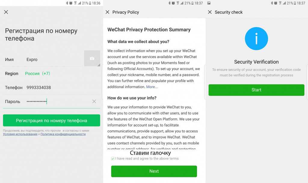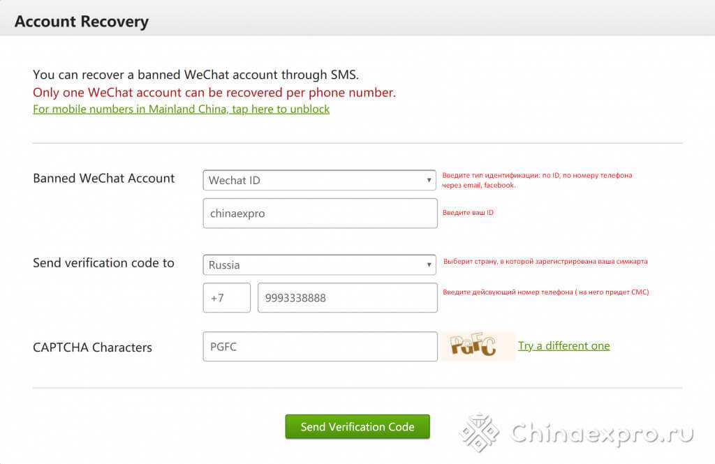 - Верификация через QR — код, который нужно отправить активному пользователю Wechat, чтобы он подтвердил, что вы реальный человек. Просто отправьте код своим друзьям которые используют это приложение, чтобы они его отсканировали и помогли с регистрацией.