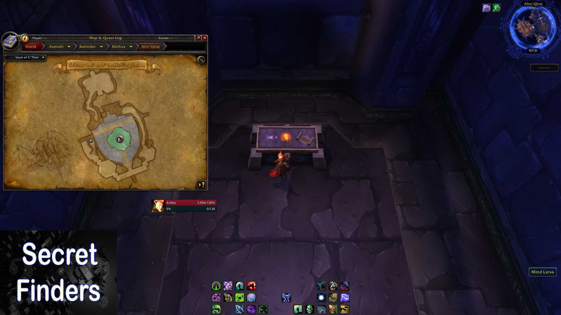 Следующая наша цель — Ан’Кираж, темница древнего бога К’Туна. Нам нужно попасть в комнату, которая находится левее него, рядом с представителями драконов, которые дают квесты и всё такое. В Обители К’Туна есть проход в комнату, поднявшись по лестнице, на столе Вы найдете Мозговую Личинку. При использовании начинается игра, схожая с Каменькрафтом . В ней Вам необходимо набрать некоторое количество очков (играйте до упора), как только игра посчитает Вас победителем, на столе появится Неприметная записка. Играть долго и нудно, но не прерывайтесь, игра сама закончит, когда будет надо