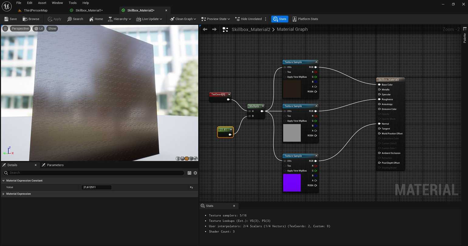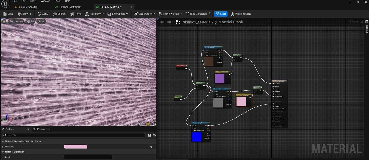 Перемещение Expressions в Material GraphАнимация: программа Unreal Editor