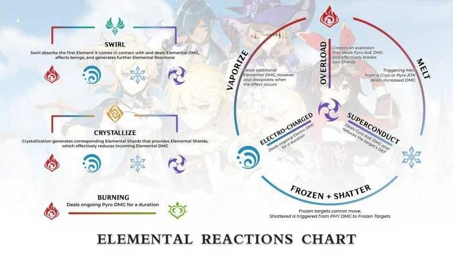Элементальная реакции и все комбинации стихий в Genshin Impact