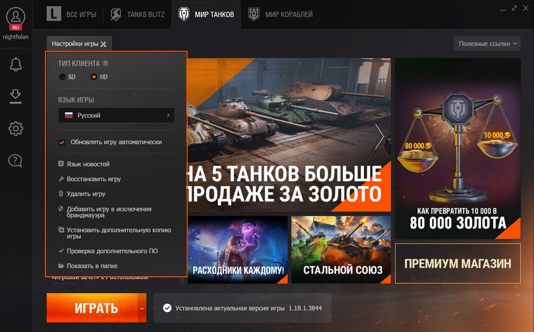 В Lesta Game Center вы можете поменять некоторые настройки игры, например язык или тип клиента: перейдите на вкладку игры и нажмите Настройки игры в левой верхней части окна. В этом же меню настроек вы можете изменить язык новостей для выбранной игры.