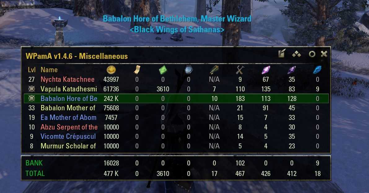 WPamA (What Pledges at my Alts) by ForgottenLight & OlegS, The Elder Scrolls Online Addon (image by @serpentaa)