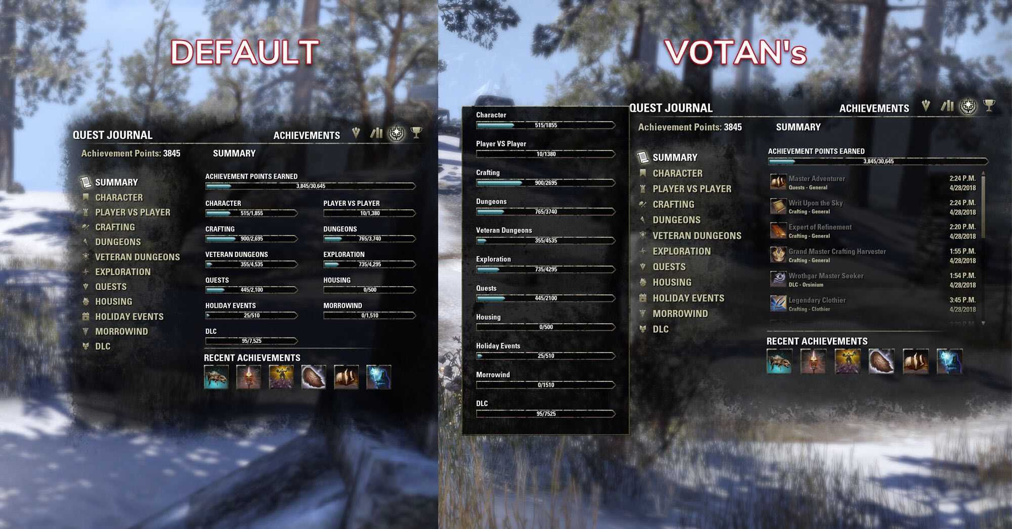 Votan’s Achievements Overview by votan, The Elder Scrolls Online Addon (image by @serpentaa)