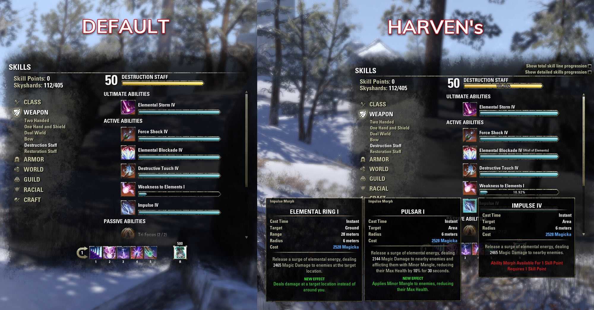 Harven’s Improved Skills Window by Harven, The Elder Scrolls Online Addon (image by @serpentaa)