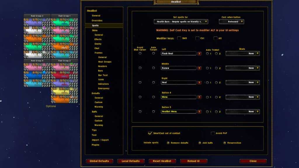 HealBot was the original mouseover healing addon for WoW, and to this day you may hear people refer to these addons as “HealBot addons.” Like VuhDo, it offers both customizable unit frames and the ability to bind spells to your mouse.