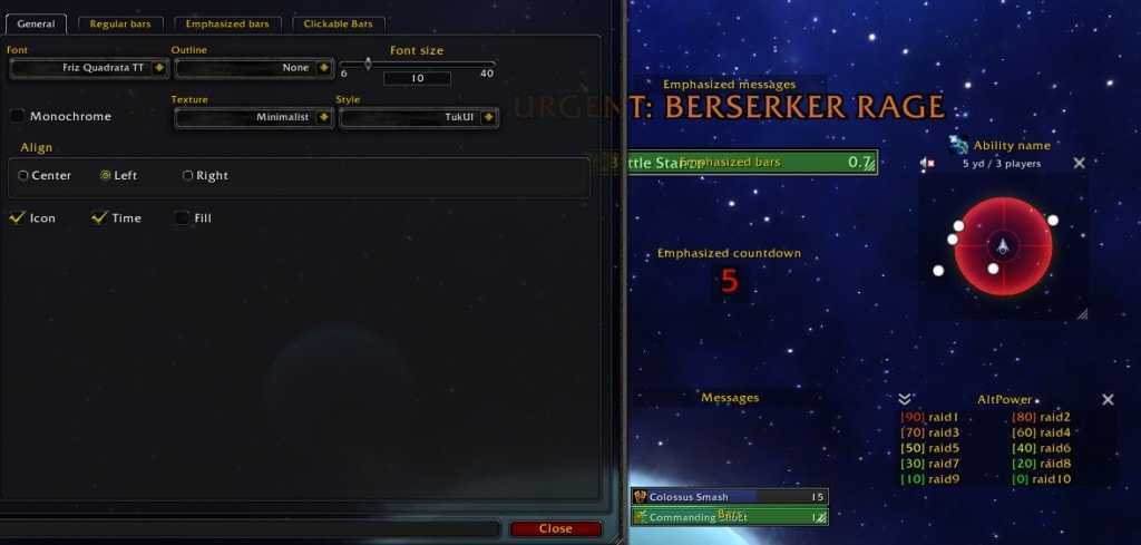 BigWigs — еще один мощный энкаунтер. Содержит много индивидуальных энкаунт скриптов, модулей для боссов, различных мини-аддонов, таймбаров, звуков и т.п.
