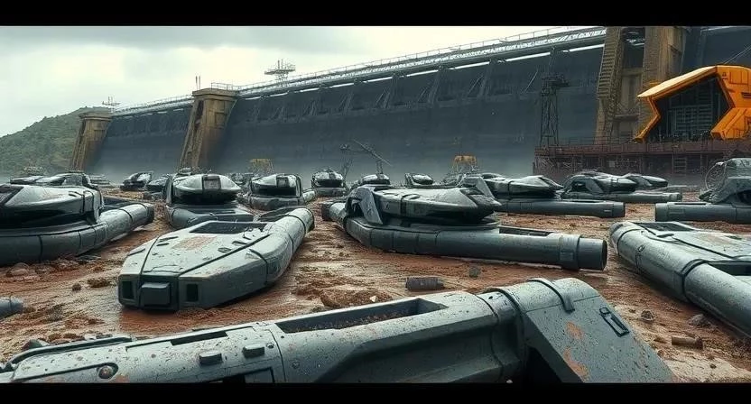 | Поле битвы у Дамбы| Разрушенные здания, дамба | Металл, Компоненты|
