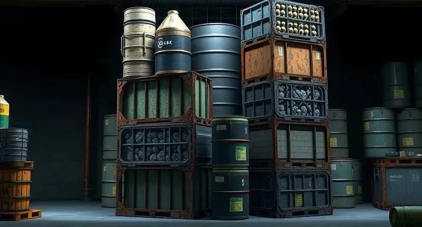 - Химикаты: Используются для создания взрывчатки и специальных боеприпасов. Находятся в промышленных зонах и химических лабораториях.