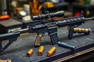 - Прицел с лазерным целеуказателем: для повышения точности стрельбы.