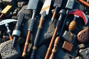 | Топор | 80 | Медленная | Короткая | Эффективен против построек, наносит большой урон. |