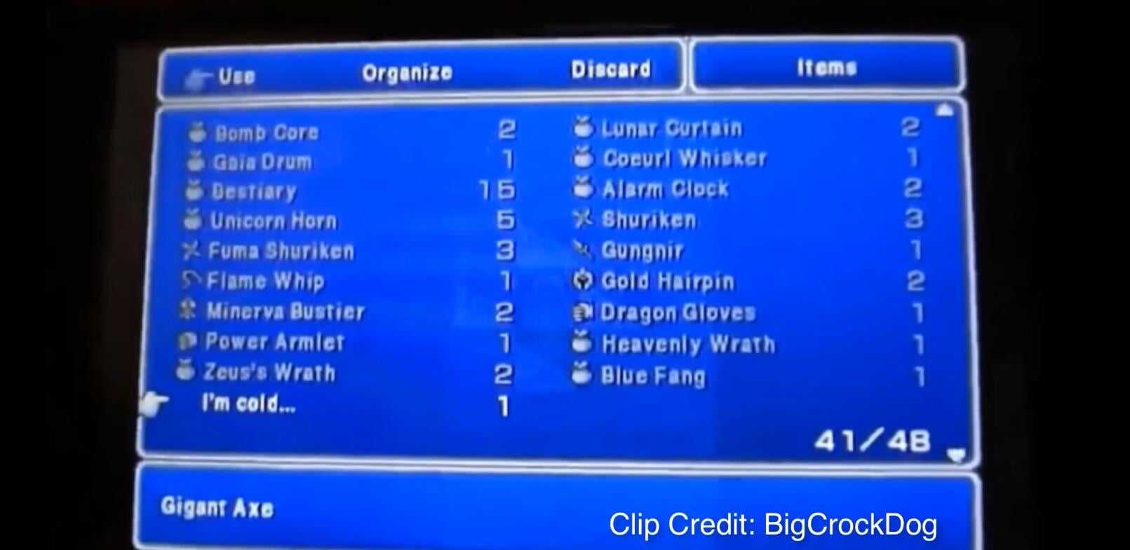 Некоторые игроки PSP-версии классической jRPG Final Fantasy IV рассказывают об очень редком событии: при неустановленных обстоятельствах группа игрока может оказаться в сражении, где имена персонажей перепутаны между собой. После победы в бою игрок получит уникальный предмет I’m cold. («Мне холодно. »), который невозможно получить никаким иным способом. В описании указано, что это гигантский топор, однако его невозможно экипировать.