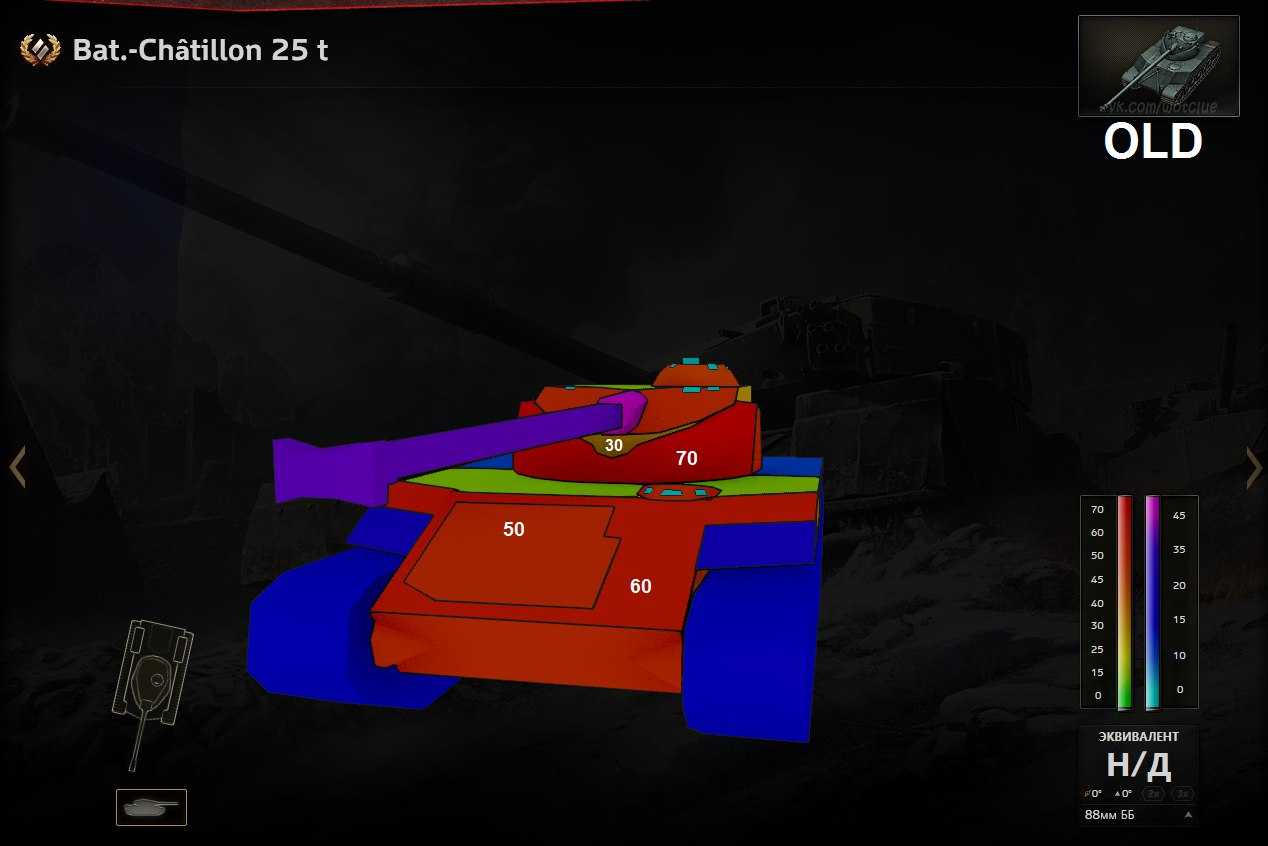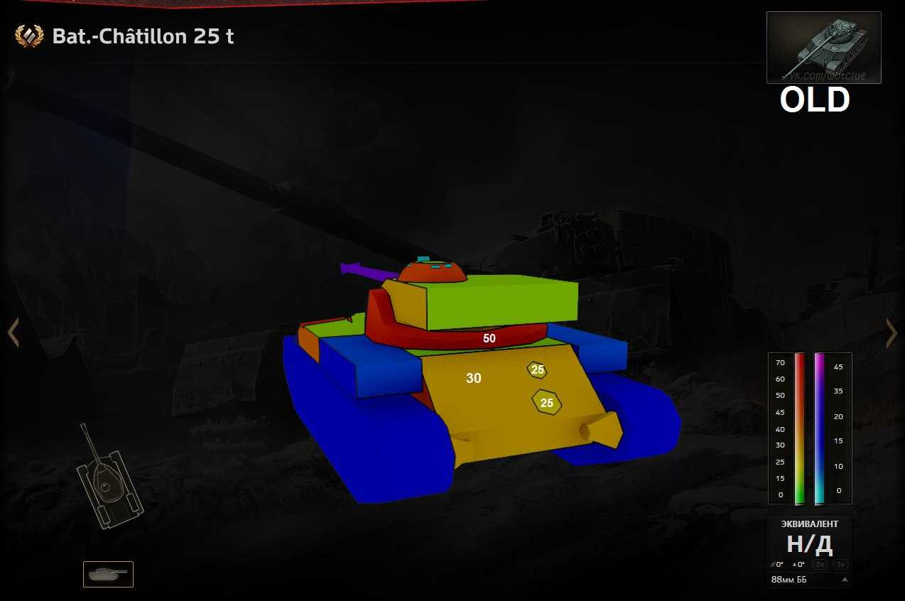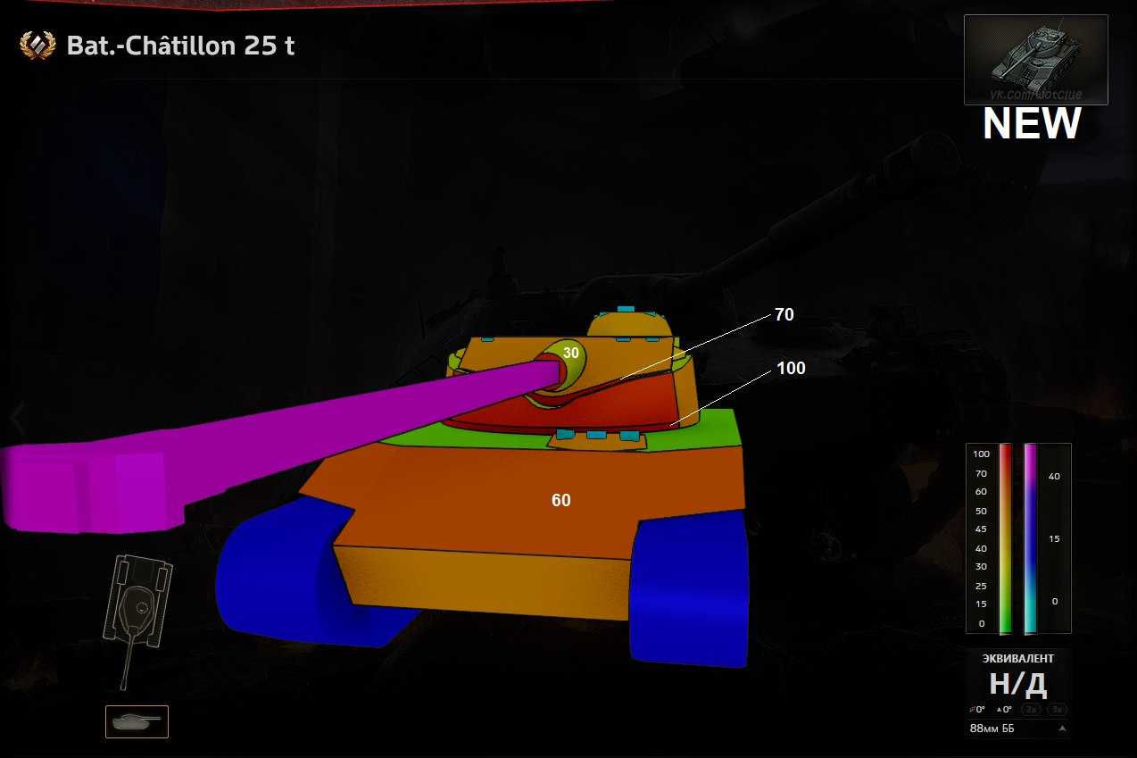 С параметрами пробития у Bat.-Châtillon 25 t WoT нет никаких проблем, в уязвимые зоны можно пробивать обычными ББ даже тяжей и при этом не стоит забывать об отличной подвижности, которая позволяет заезжать врагу в борт и корму, непрерывно расстреливая его. Однако все же возить с собой несколько барабанов голды стоит, просто на всякий случай.