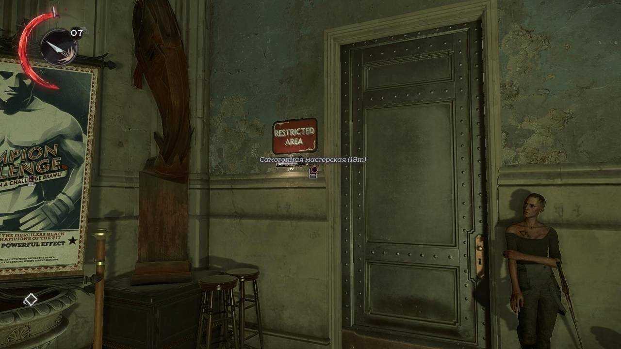После этого отправляйтесь к черному рынку. Если выйти из него, подняться по ступеньками и пройти через арку налево — вы увидите еще одну лестницу. Прямо под ней есть неприметная дверь. Откройте её при помощи гаечного ключа и зайдите внутрь. Там через окно вы сможете заглянуть внутрь черного рынка и увидеть там красную кнопку, отпирающую дверь. Выстрелите в неё чем-нибудь и переходите к ограблению.