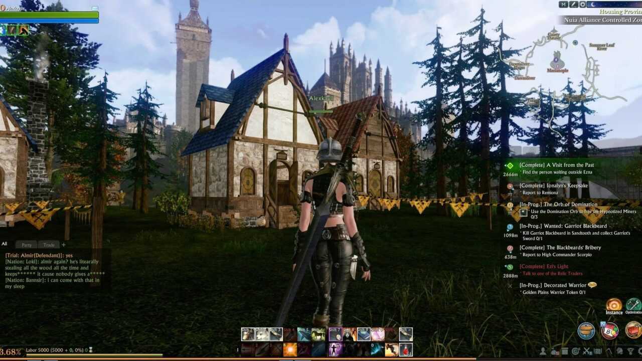 По локациям разбросаны месторождения камня и других материалов, деревья. Новички не могут что-то сделать с этими ресурсами, т.к. нет возможности строить дом или производить оружие и снаряжение. Из-за этого соберите вещи в паки и продайте на аукционе или отдайте НПС-торговцу.