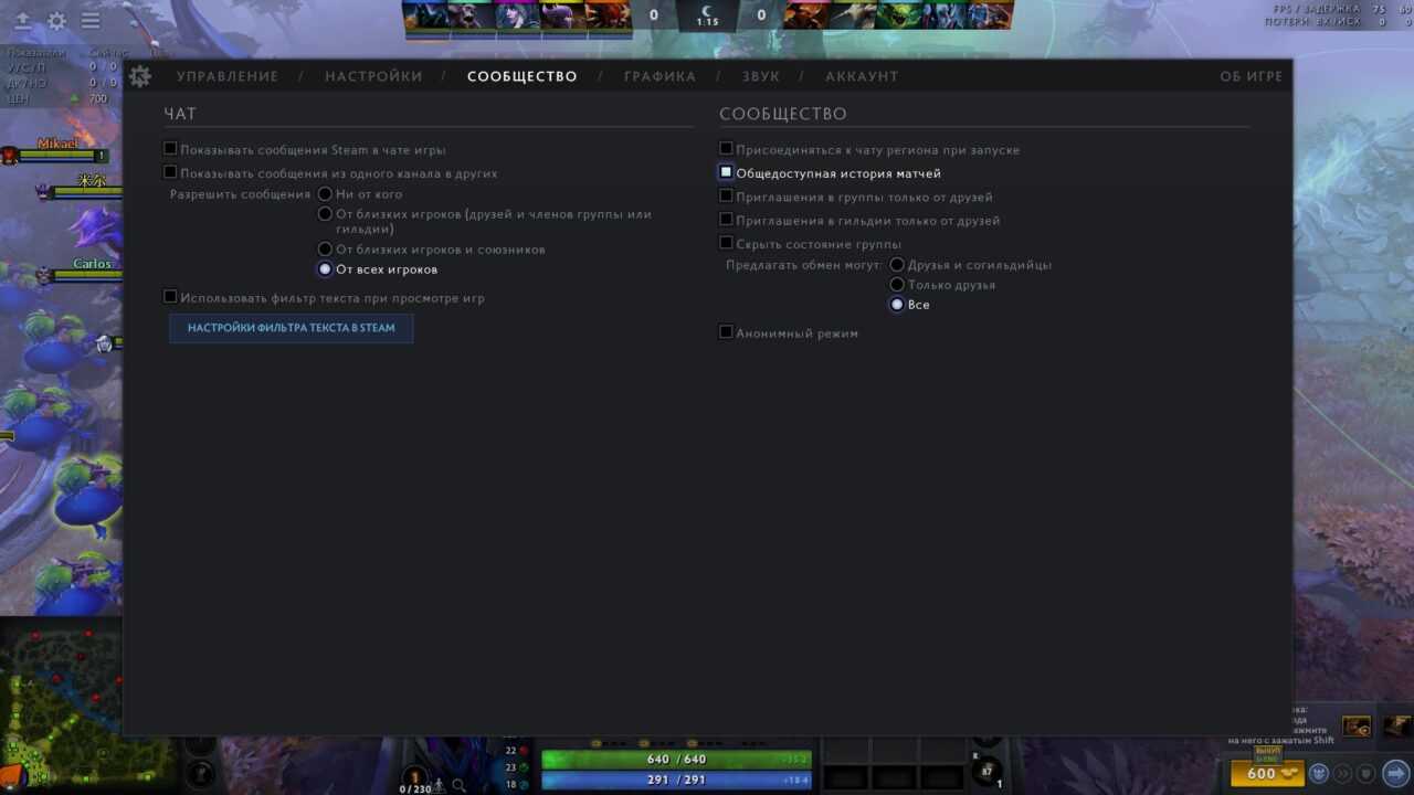 Это основные настройки чата, которые представлены в игре Dota 2. Рекомендуем воспользоваться всеми ими перед тем, как запускать поиск матча.