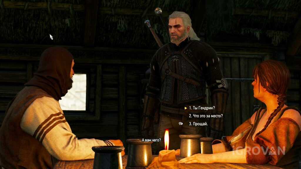 В самой корчме, справа от стойки за столом сидит пожилая пара. С ними можно вступить в диалог, в ходе которого Геральт попытается выяснить больше информации о Велене и Гендрике