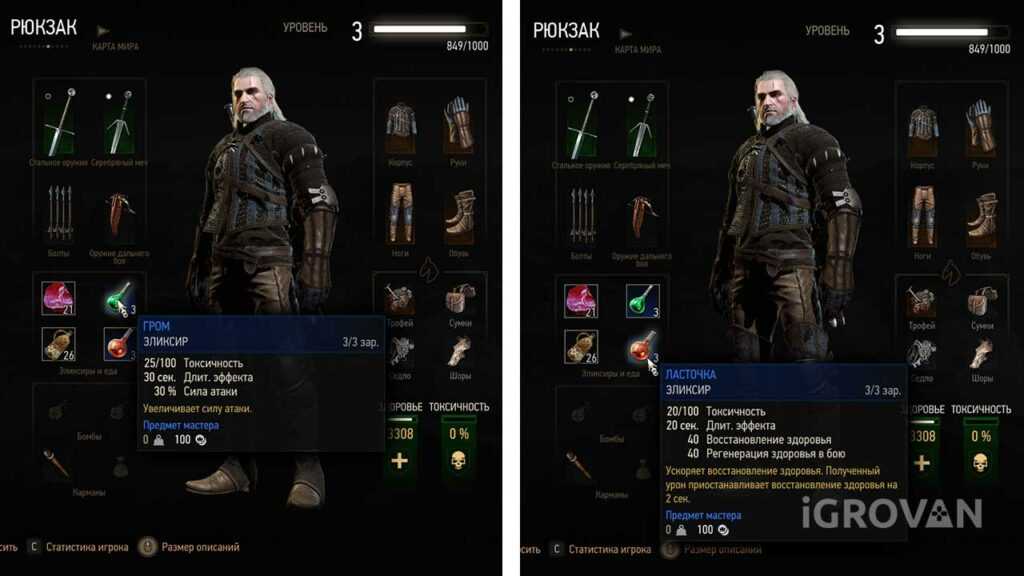 На старте игры самыми полезными эликсирами будут: Ласточка, Гром и Кошка.