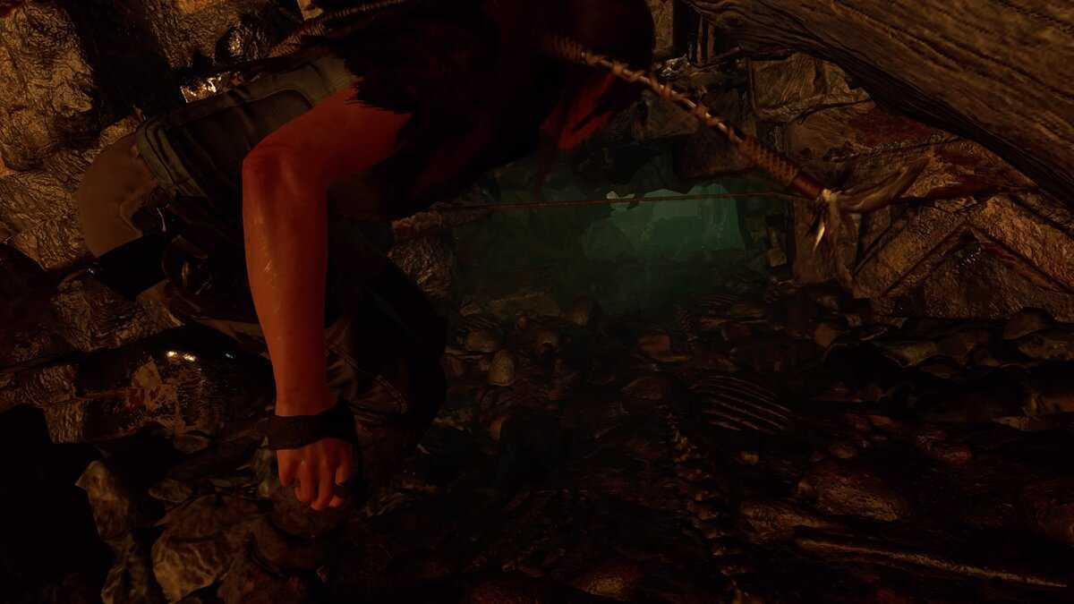 - Из лагеря нужно спуститься на тросе, с правой стороны будут ценности и вход в пещеру, где находится деталь от древнего лука, раритетная вещь и клад.
