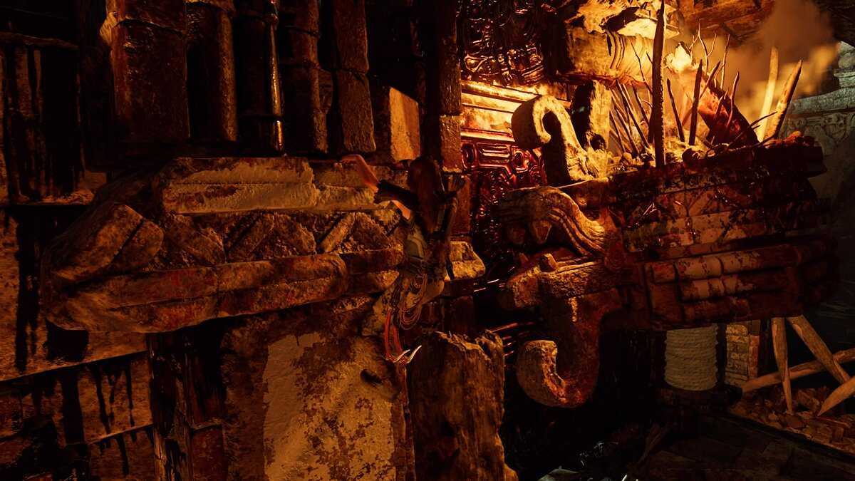 Войдя внутрь храма в скале, Лара видит перед собой огромные ворота в святилище, открыть которые не получится, потому что рычаг рядом с ними связан с противовесом, вмёрзшим в лёд. Наша главная задача – разбить этот лёд вторым, свободным противовесом.