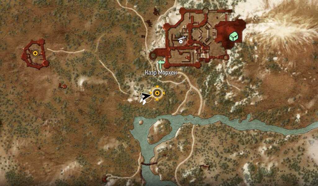 В лагере будет очень много бандитов, поэтому стоит хорошо прокачаться и подготовиться прежде, чем приходить сюда. Нужные чертежи Гроссмейстерских сапог и штанов Школы Кота находятся в сундуке слева от основного здания на возвышенности. Как всегда его можно отличить от обычных контейнеров при помощи ведьмачьего чутья.