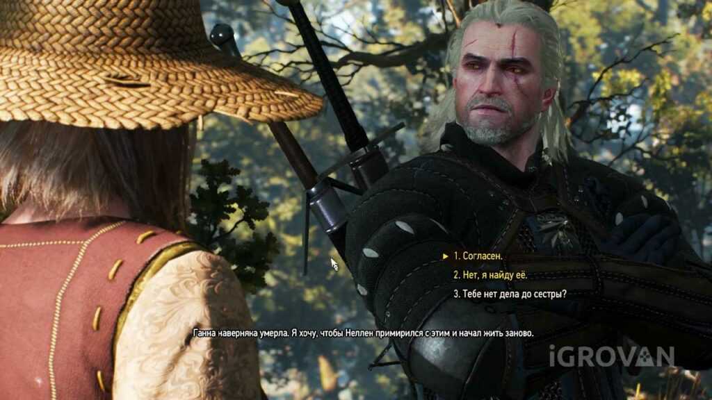 Далее ведьмак расскажет Неллену, что его жену Ганю разорвали волки. Охотник поникнет, но все равно предложит ведьмаку плату за задание. Если согласитесь взять деньги, то Неллен заплатит 10 крон, а Геральт получит ещё 50 очков опыта. В случае отказа от вознаграждения придется довольствоваться только 30-ю очками опыта.