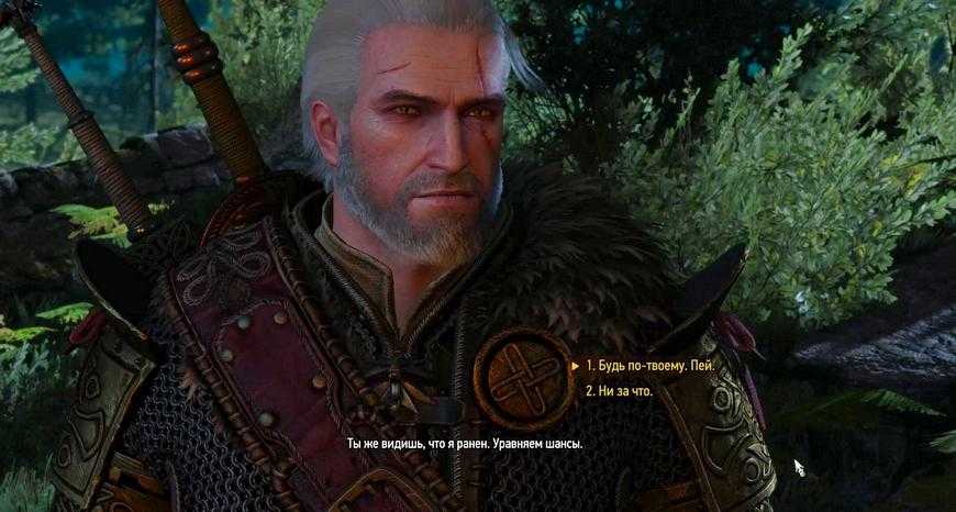 В любом случае он попросит у Геральта зелье Ласточка, так как он пострадал от вил крестьян, а значит, бой будет неравным. Опять появляется развилка: