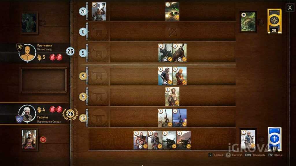 - А дальше просто заполняйте свою часть поля картами, начиная от самых слабых. Вам нужно выиграть два раунда из трёх. В Вызиме даже на трудном уровне сделать это будет несложно.