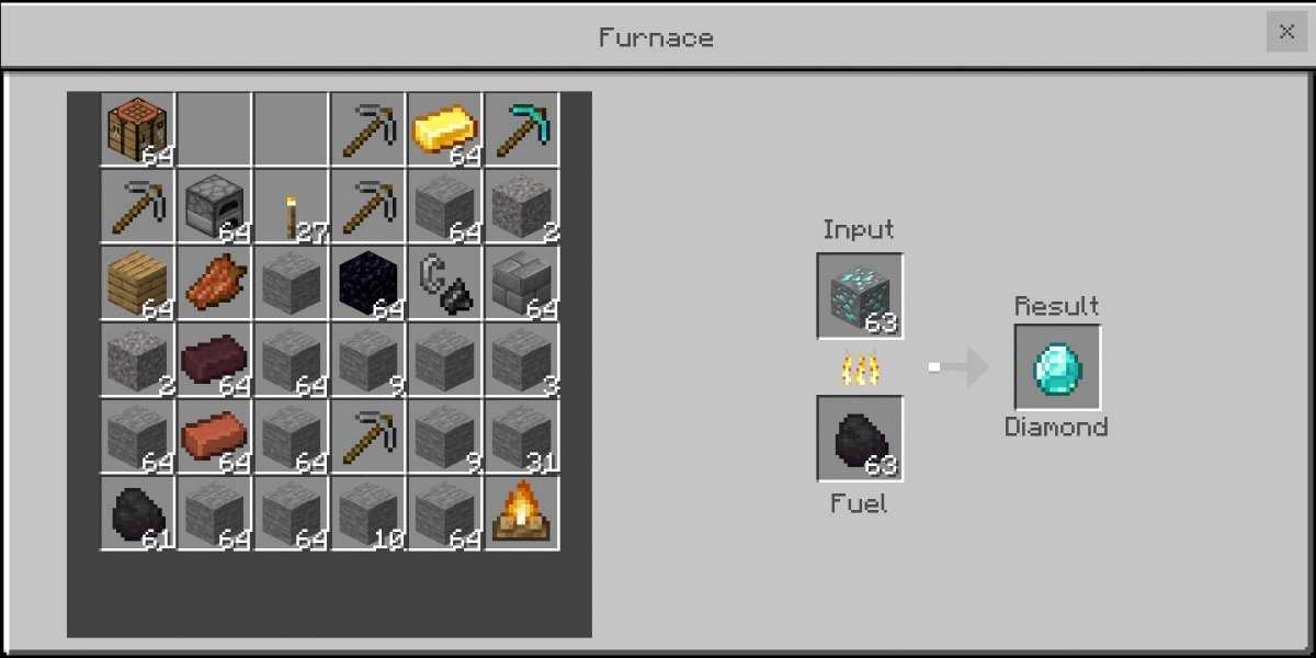 Попробуйте воспользоваться заклинанием удачи для кирки, чтобы увеличить количество алмазов и шансы найти руды. У этого заклинания есть 3 уровня. Использование кирки с Шелковым прикосновением позволит вам получить всю руду, а не только минерал. В печи вы можете расплавить руду с любым топливом, чтобы получить сам алмаз.