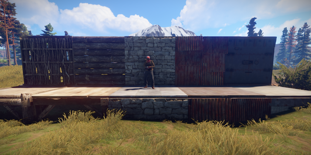 В Rust’е существует 2 вида фундаментов – это квадратный и треугольный, каждый из них может существовать в виде: соломенного, деревянного, каменного, железного, бронированного фундамента. Итак, разберемся по порядку.