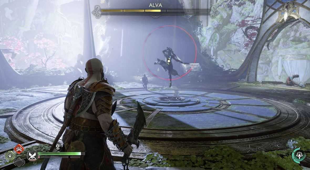 - Когда валькирия подлетает, а над ней появляется алый круг – это сигнал, что она хочет провести оглушающую атаку. Моментально говорите Атрею выстрелить из лука, чтобы помешать валькирии.