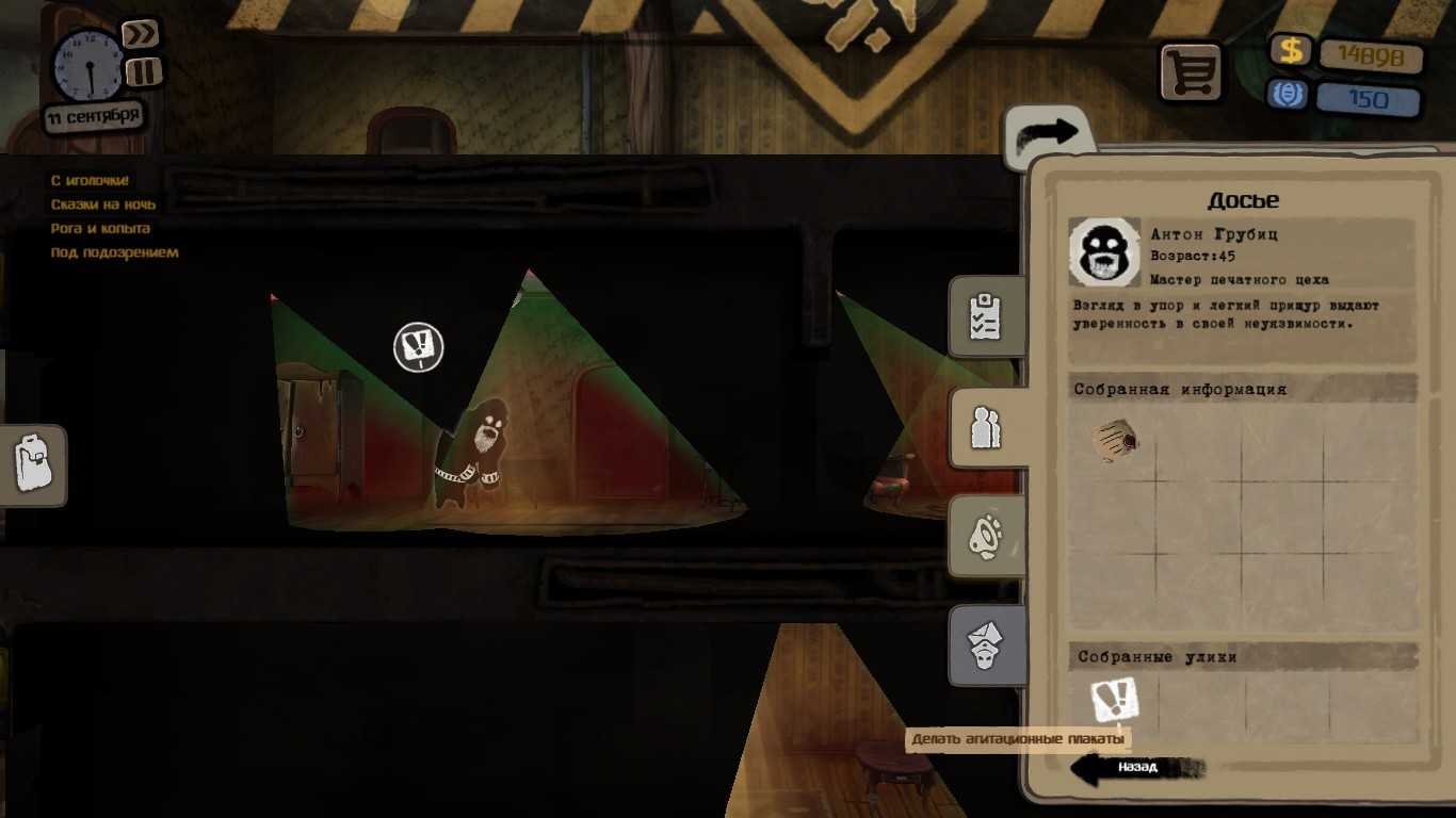 Установив слежку за квартирой, мы видим — Грубиц нарушает директивы правительства! Пишем рапорт! Но не всё так просто… нам выдают штраф за то, что Грубиц — агент правительства, это можно узнать, обыскав его крвартиру и найдя распоряжение. Карлу звонят с верху и докладывают о том, что рады нашему рвению и вскоре выдадут премию. После звонит Джордж Дантон и спрашивает о Грубице.