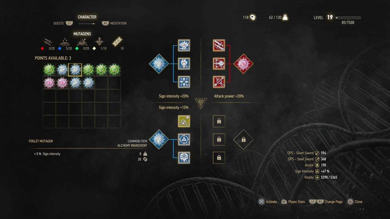 Кроме мутагенов для развития мутаций вам в большом количестве понадобятся очки умений, получаемых за каждый новый уровень или при активации Мест Силы. Если вы не знаете, как перераспределить очки умений и выделить некоторое количество очков для мутаций, смотрите гайд “Как сбросить очки умений в Ведьмаке 3?”