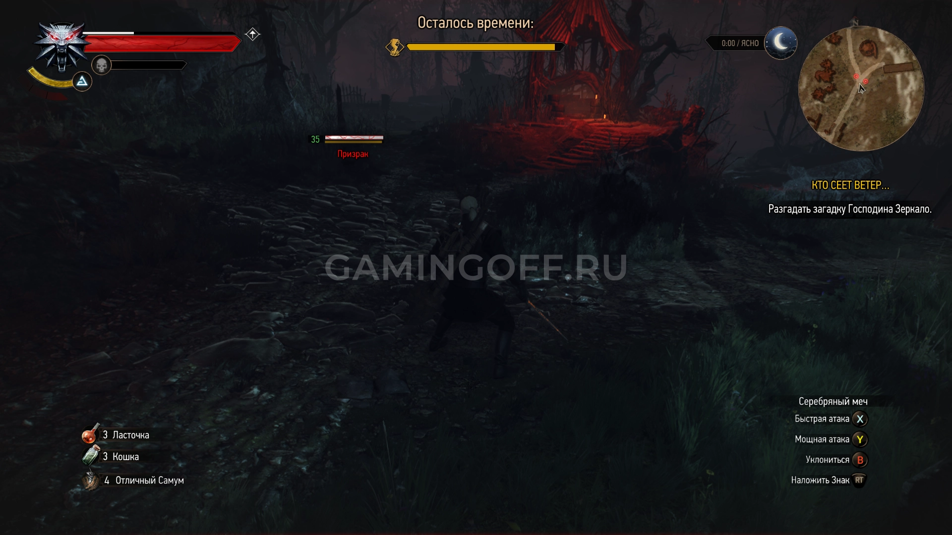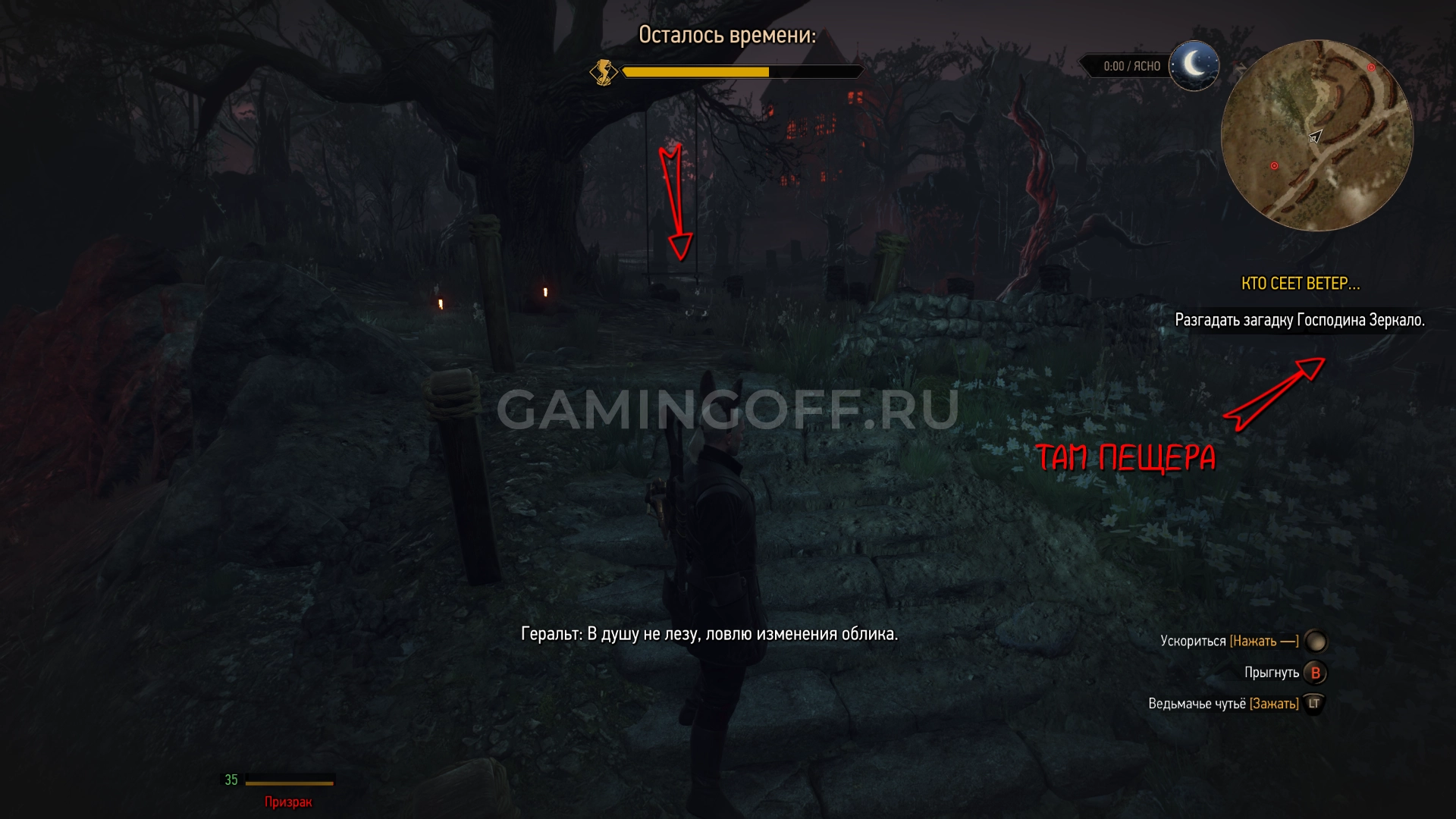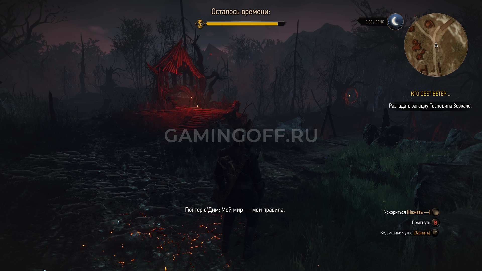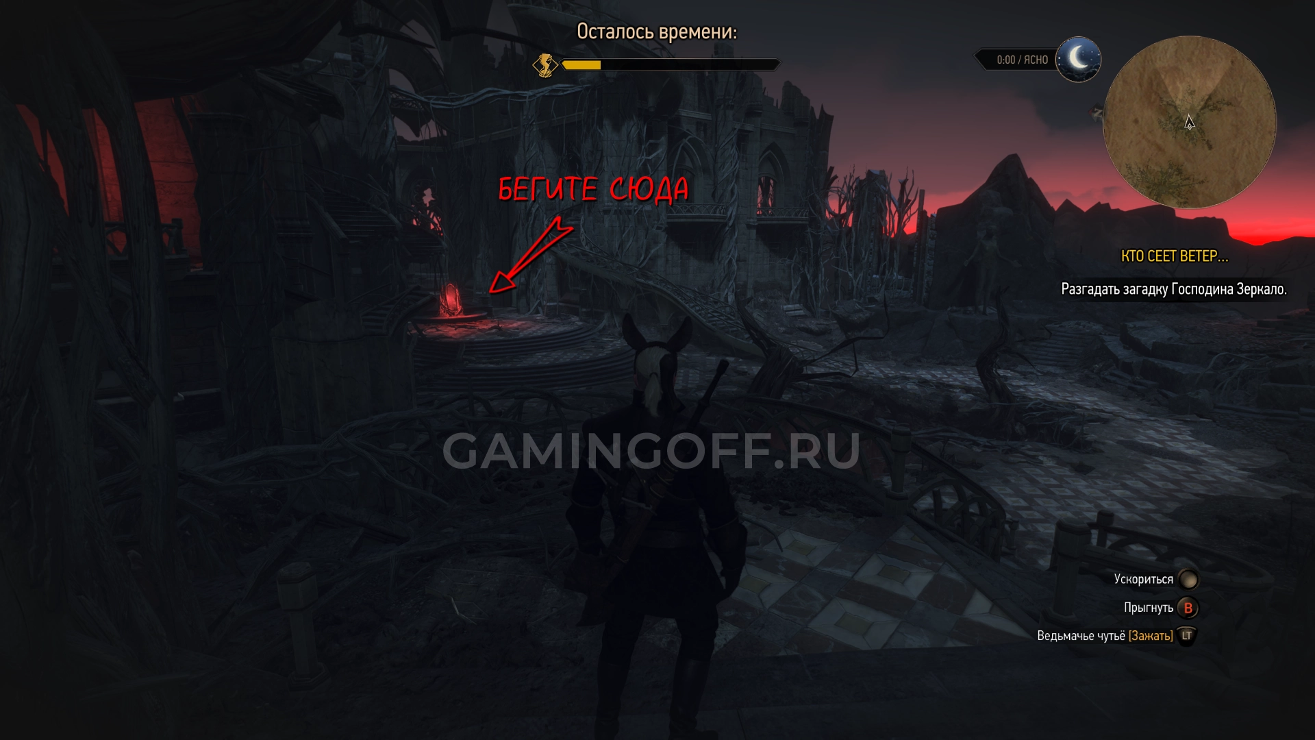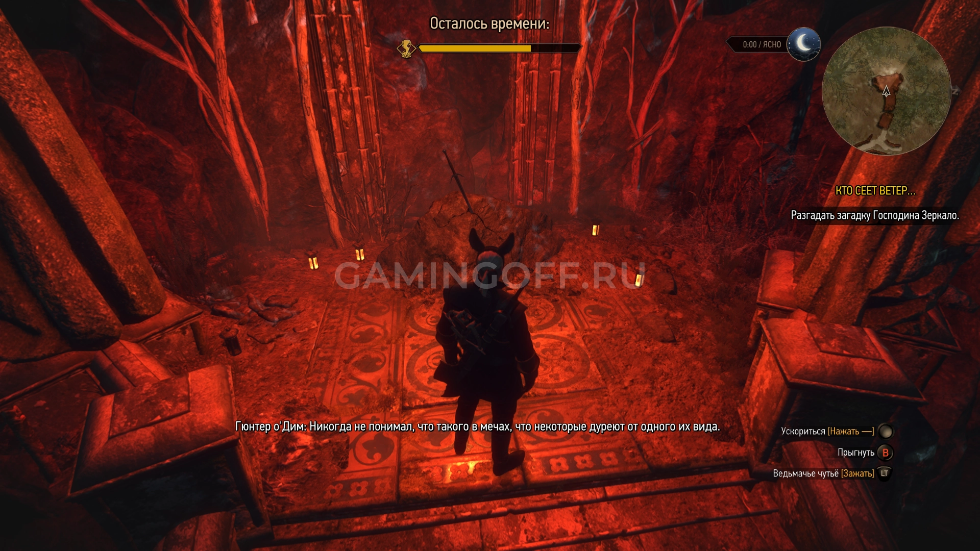 Но Господин Зеркало не был бы собой, если бы не строил козни на пути. Как только Геральт окажется в его мире, то начнет тикать время прохождения задания, поэтому стоит поторопиться.