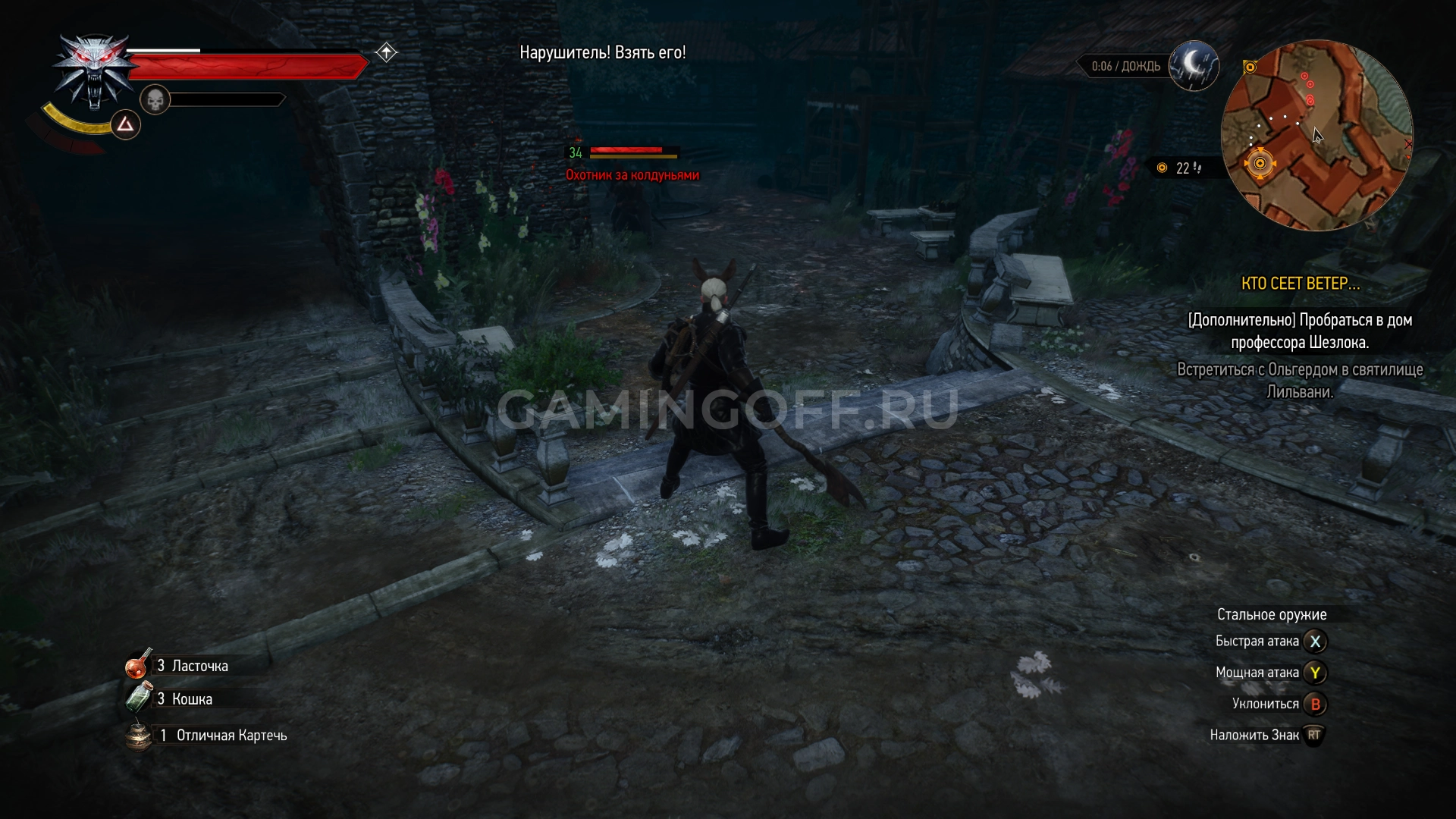 Важно: Обратите внимание, что бой с Обвиняемым доступен только при условии, если у Геральта нет живых свидетелей, которые могут свидетельствовать в его пользу