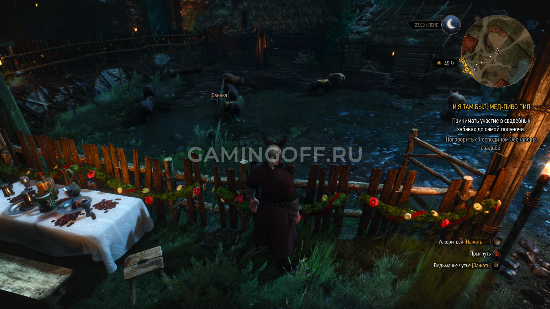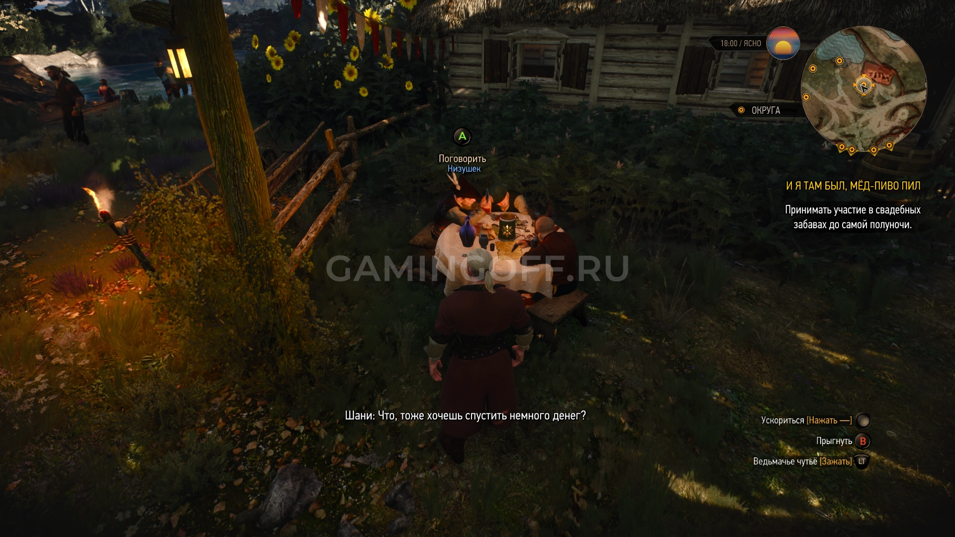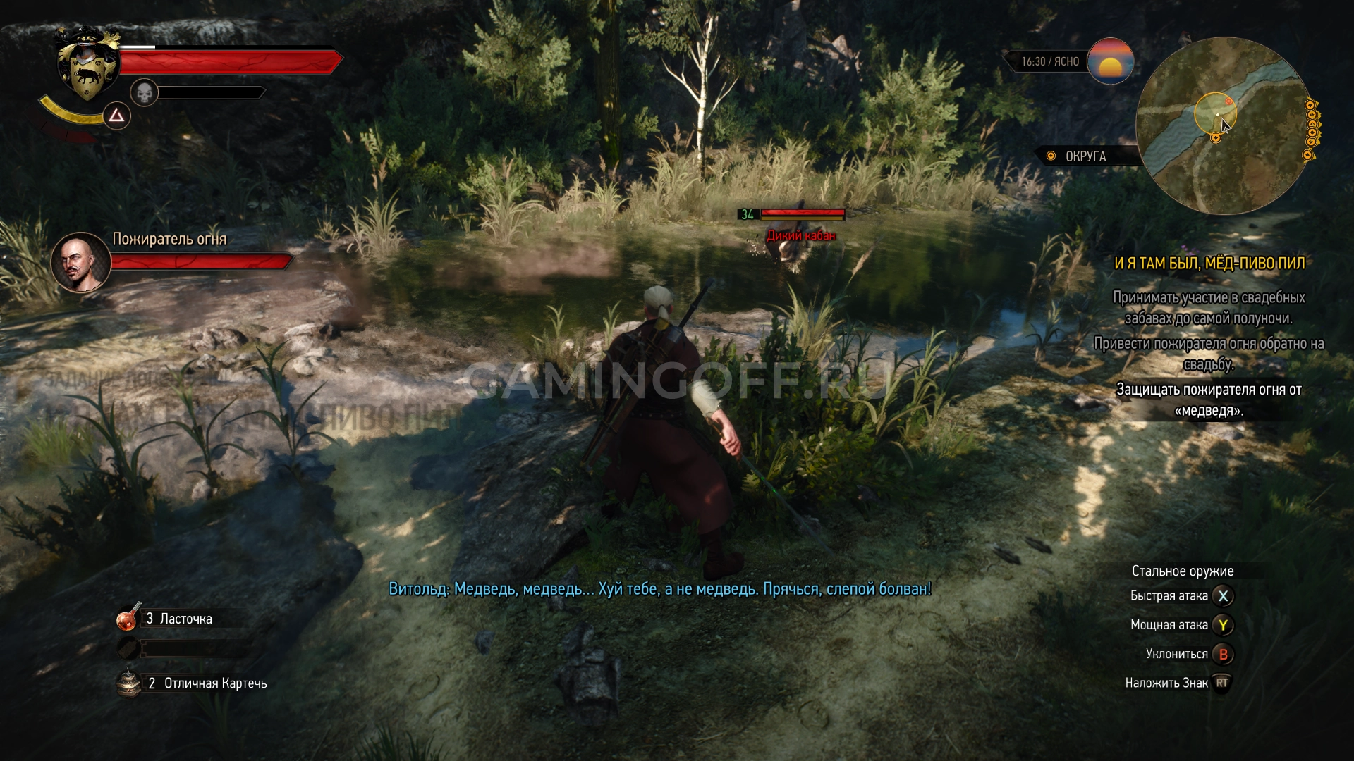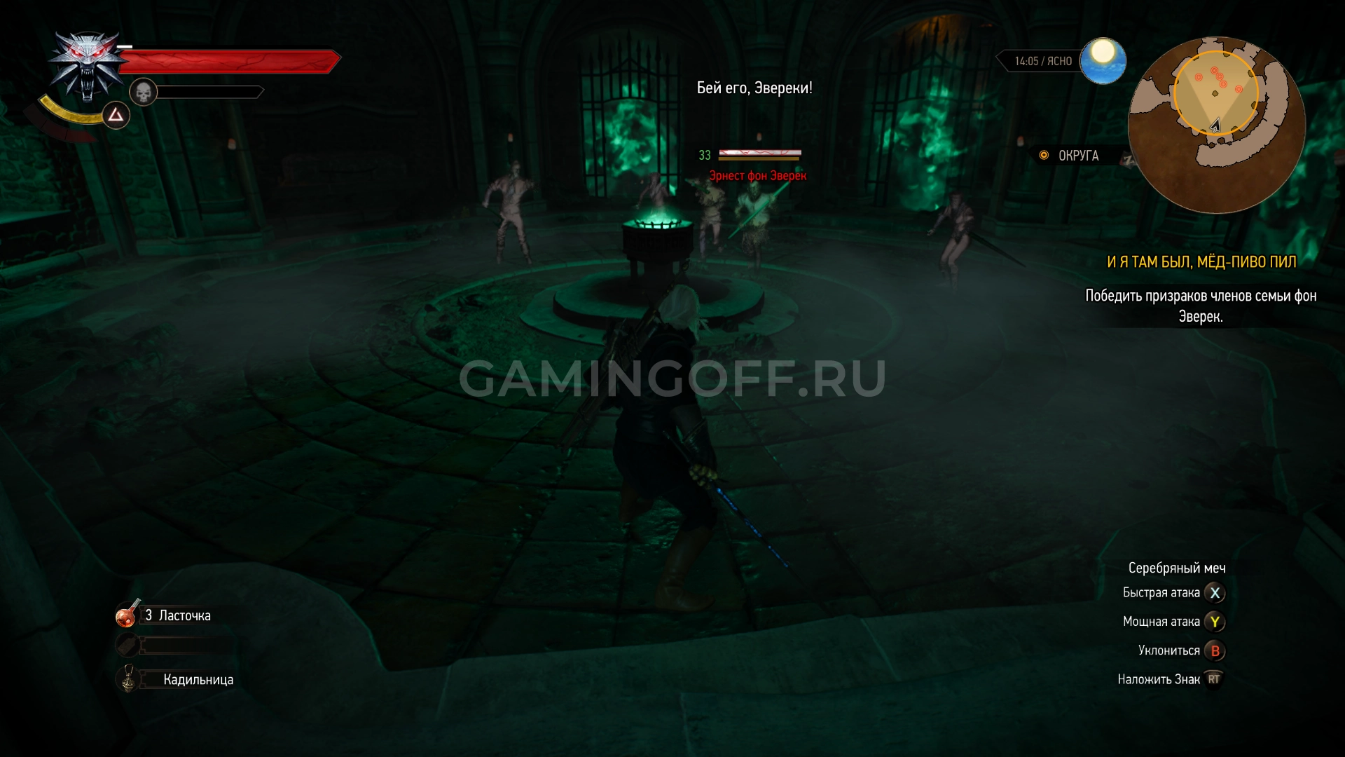 Быть мёртвым до одури скучно. Ни повеселиться даже на самых задорных гуляньях, ни вкусить заморских деликатесов и напитков, ни помахать любимой саблей, рубя головы неугодным кметам. Такая незадачливая участь постигла и Витольда Фон Эверека, почти покинувшего этот бренный мир несколько лет назад. К счастью для Витольда, его старший брат Ольгерд никогда не забывал о нём, и когда на порог горящего поместья Гарин ступила нога седоволосого ведьмака школы Волка Геральта из Ривии, обязавшегося выполнить три желания дворянина-разбойника, одно из них требовало заставить Витольда повеселиться на славу. Как же Геральту это сделать? Узнаете из этого руководства по прохождению квеста «Я там был, мёд-пиво пил!«
