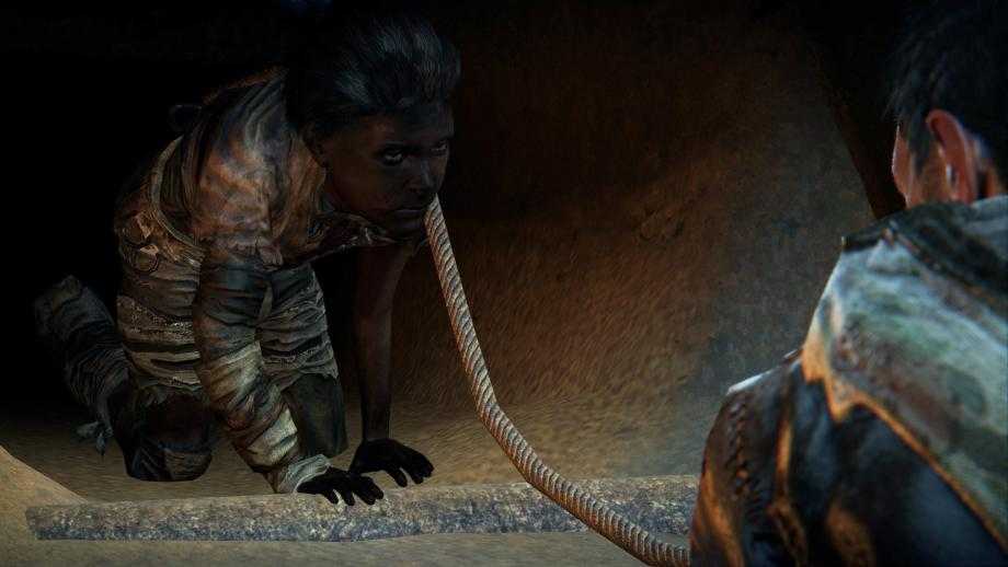 Забираемся на возвышенность, по тросу съезжаем к автомобилю. Едем к ближайшей скале. Жестянщик передаст нам сигнальную ракетницу, чтобы мы могли вызывать его. Общаемся с незнакомцем, его зовут Гриффа. Сможем распределить очки умений для развития персонажа. Чтобы прокачиваться дальше, нам понадобятся специальные значки, которые выдаются при завершении тех или иных испытаний.
