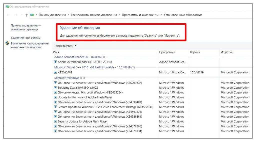 Удаление обновления KB4515384