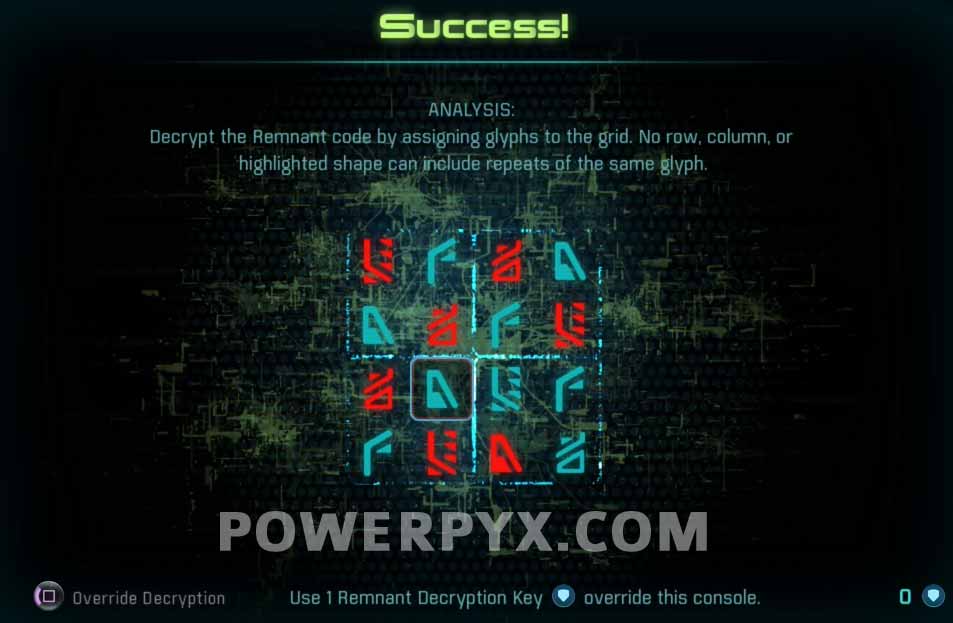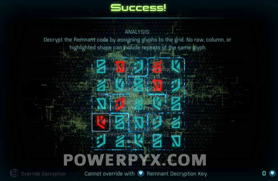 Another Remnant Decryption Puzzle can be found while free roaming Voeld, at the end of a Remnant Vault that you can visit at any time. You go there during the “Subjugation” task but it’s possible to enter without any active quests (credit to DMI605 and Immortal_Joker for the location).