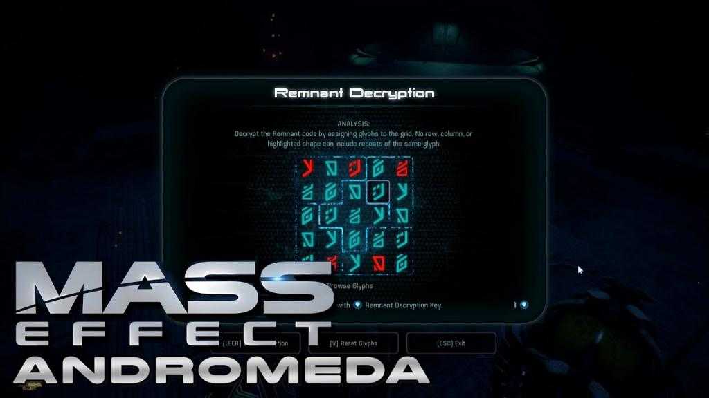 Во время прохождения Mass Effect Andromeda вы столкнетесь со множеством глифов и головоломок древней расы, что оставила после себя терминалы и консоли. Эти головоломки Реликтов, по сути, представляют собой высокий уровень защиты их знаний, тайн. Если не разобраться, как разгадывать такой код, то играть будет сложнова-то, ибо раздобыть ключ расшифровки будет не всегда возможно. Если за одну игру решить 20 головоломок, то можно получить достижение/трофей «Криптограф» (Cryptographer).