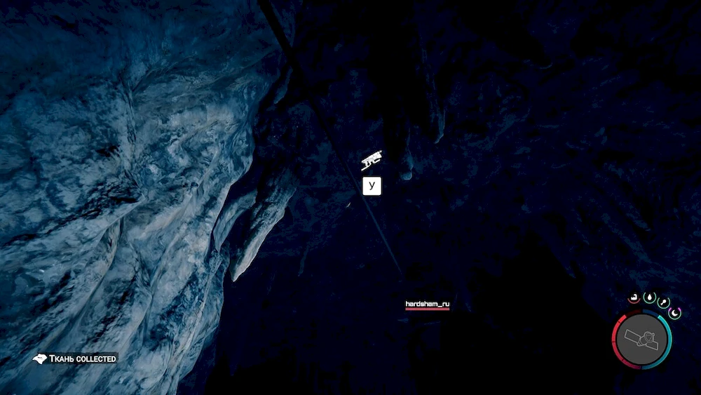 Вам нужно дойти до обрыва, поэтому двигайтесь вперед. Внизу можно найти весьма полезные предметы, но чтобы добраться до них, придется перебираться через высокую стену. Для этого нам и нужен тросомет — посмотрите вверх, используйте трос (персонаж должен взять его в руки). Взаимодействуйте с тросометом, чтобы преодолеть препятствие.