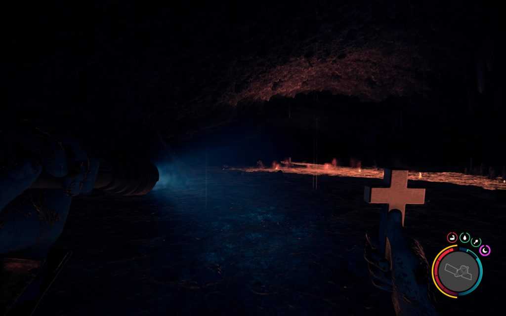 Лопата: В пещере в центре острова, у основания горы, где развилка реки. В воде перед пещерой лежат три трупа на кольях. У входа, чтобы попасть внутрь, нужно воспользоваться веревочным пистолетом. Есть также длинные подводные участки, для прохождения которых требуется Реаниматор.